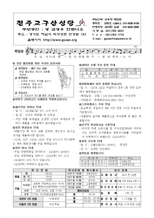 [천주교 구산성당 주보] 2025년 12월 7일 페이지 정보 작성자 사무장 댓글 0건 조회 162회 작성일 25-12-05 10:03 목록 본문 . 이전글[천주교 구산성당 주보] 2025년 12월 14일 25.12.13 다음글[천주교 구산성당 주보] 2025년 11월 30일 25.11.28 댓글 0 댓글목록 등록된 댓글이 없습니다.