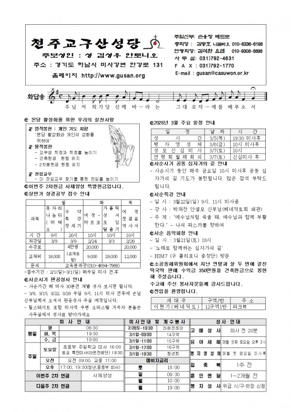 [천주교 구산성당 주보] 2026년 3월1일 페이지 정보 작성자 사무장 댓글 0건 조회 137회 작성일 26-02-27 10:44 목록 본문 . 이전글[천주교 구산성당 주보] 2026년 3월 8일 26.03.06 다음글[천주교 구산성당 주보] 2026년 2월 22일 26.02.20 댓글 0 댓글목록 등록된 댓글이 없습니다.
