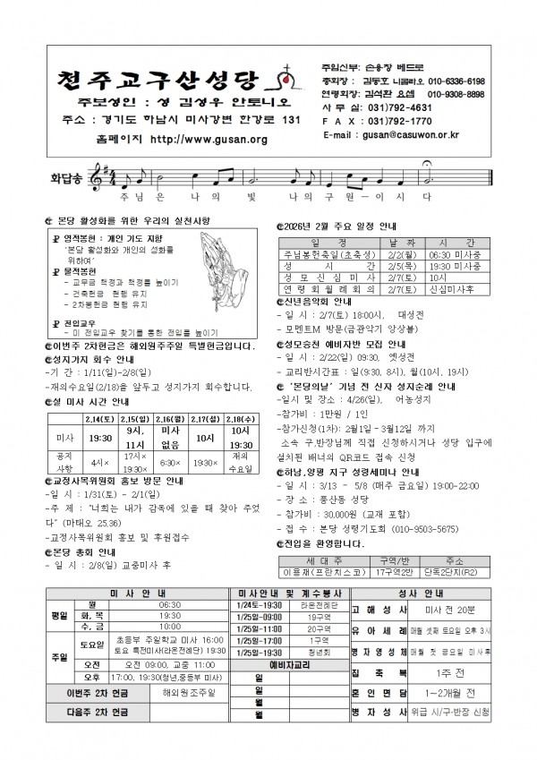 [천주교 구산성당 주보] 2026년 1월 25일 페이지 정보 작성자 사무장 댓글 0건 조회 201회 작성일 26-01-23 10:04 목록 본문 . 이전글[천주교 구산성당 주보] 2026년 2월1일 26.01.30 다음글[천주교 구산성당 주보] 2026년 1월 18일 26.01.16 댓글 0 댓글목록 등록된 댓글이 없습니다.
