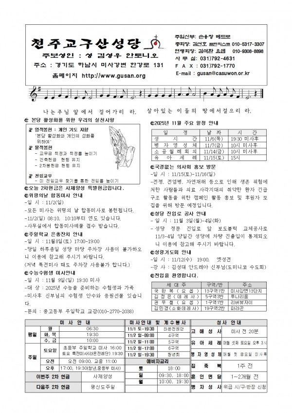 [천주교 구산성당 주보] 2025년 11월2일 페이지 정보 작성자 사무장 댓글 0건 조회 26회 작성일 25-11-01 15:48 목록 본문 . 다음글[천주교 구산성당 주보] 2025년 10월 26일 25.10.24 댓글 0 댓글목록 등록된 댓글이 없습니다.