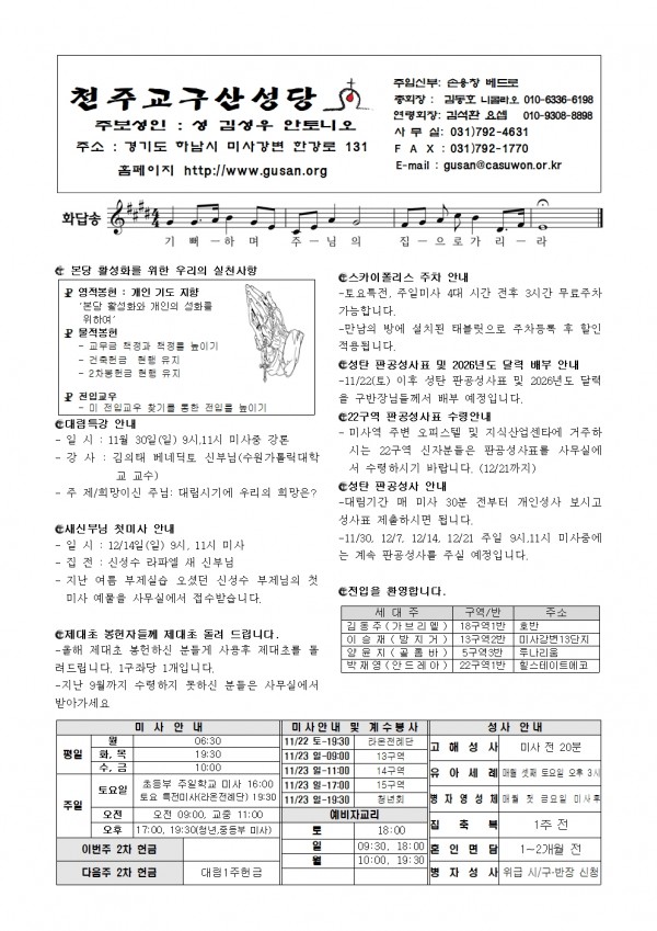 [천주교 구산성당 주보0 2025년 11월23일 페이지 정보 작성자 사무장 댓글 0건 조회 120회 작성일 25-11-22 16:51 목록 본문 . 이전글[천주교 구산성당 주보] 2025년 11월 30일 25.11.28 다음글[천주교 구산 성당 주보] 2025년 11월 16일 25.11.15 댓글 0 댓글목록 등록된 댓글이 없습니다.