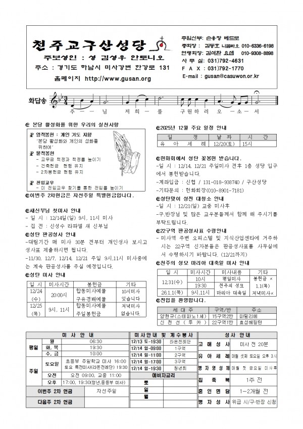 [천주교 구산성당 주보] 2025년 12월 14일 페이지 정보 작성자 사무장 댓글 0건 조회 130회 작성일 25-12-13 17:08 목록 본문 . 이전글[천주교 구산성당 주보] 2025년 12월21일 25.12.19 다음글[천주교 구산성당 주보] 2025년 12월 7일 25.12.05 댓글 0 댓글목록 등록된 댓글이 없습니다.